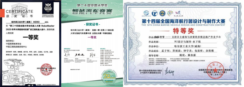 在刚刚结束的25赛季中,联创平台硕果累累。HERO竞技机器人实验室在2025全国大学生机器人大赛RoboMaster赛事中获得了东部区域赛亚军,全国步兵机器人组、工程机器人组、空中机器人组、哨兵机器人组共4项国家一等奖;除了在科创赛事中取得巨大突破,在学业成绩上HERO实验室也绝不落下,在刚刚结束的22级保研推免工作中,HERO实验室保研率达到了50%(共32人,保研16人)。718智能车实验室在2025全国大学生智能汽车竞赛中获得了1项国家一等奖、3项国家二等奖(全校区共5项国奖),尤其是在参赛队员全部都是大一学生的情况下,与高年级同台竞技时也毫不逊色,所参与的所有组别中均获得全校区最好成绩。ROVER水下机器人实验室与SEVO无人船实验室共6组参加2025全国海洋航行器设计与制作大赛,其中有5组获得了国家级奖项,包括国家特等奖1项、一等奖1一项、二等奖3项,国奖获得率超80%。联创平台已成为我校名副其实的“硬核科创人才蓄水池”,为全校科创团队、课题组、研究所输送大量后备力量。
