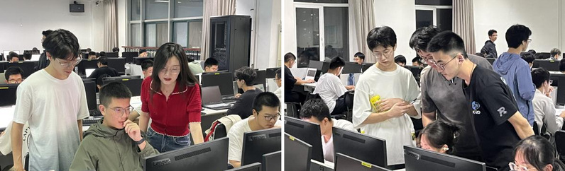 “去年我也是被学长‘拖’进实验室的,今年轮到我啦!”2024 级718实验室负责人王子硕在考核现场巡考与答疑。为了让新生快速适应考核节奏,平台提前两周开放“每日一题”,并安排 80余名高年级学辅“1 对 15”认领小组,从环境配置、调试技巧到心态调整全程陪伴。